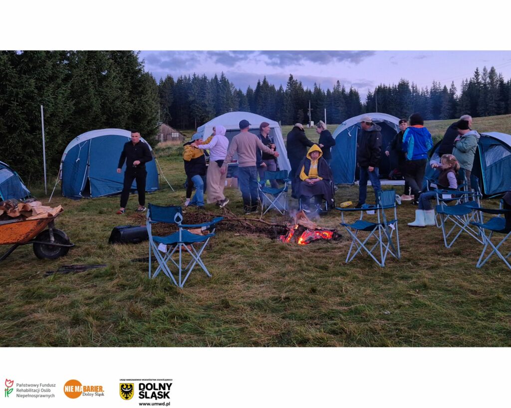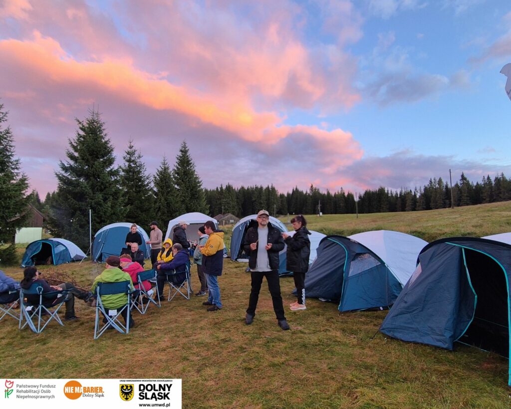 Mimo zmiennej pogody – raz deszczu, raz słońca – wszyscy świetnie poradzili sobie z rozstawianiem namiotów, przygotowywaniem posiłków i organizacją wspólnego czasu. Dla osób z niepełnosprawnością intelektualną takie doświadczenia to ogromny krok w stronę większej niezależności i pewności siebie.
